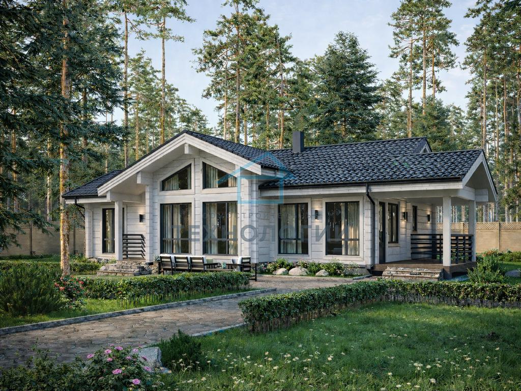Конструктивно дом выполнен из профилированного или клееного бруса, что гарантирует точную геометрию, надежность и предсказуемую усадку. Такой материал обеспечивает плотное соединение венцов, хорошие теплоизоляционные характеристики и благоприятный микроклимат внутри помещений. За счет одноэтажного решения нагрузка на фундамент распределяется равномерно, что позволяет оптимизировать стоимость основания без потери надежности.
